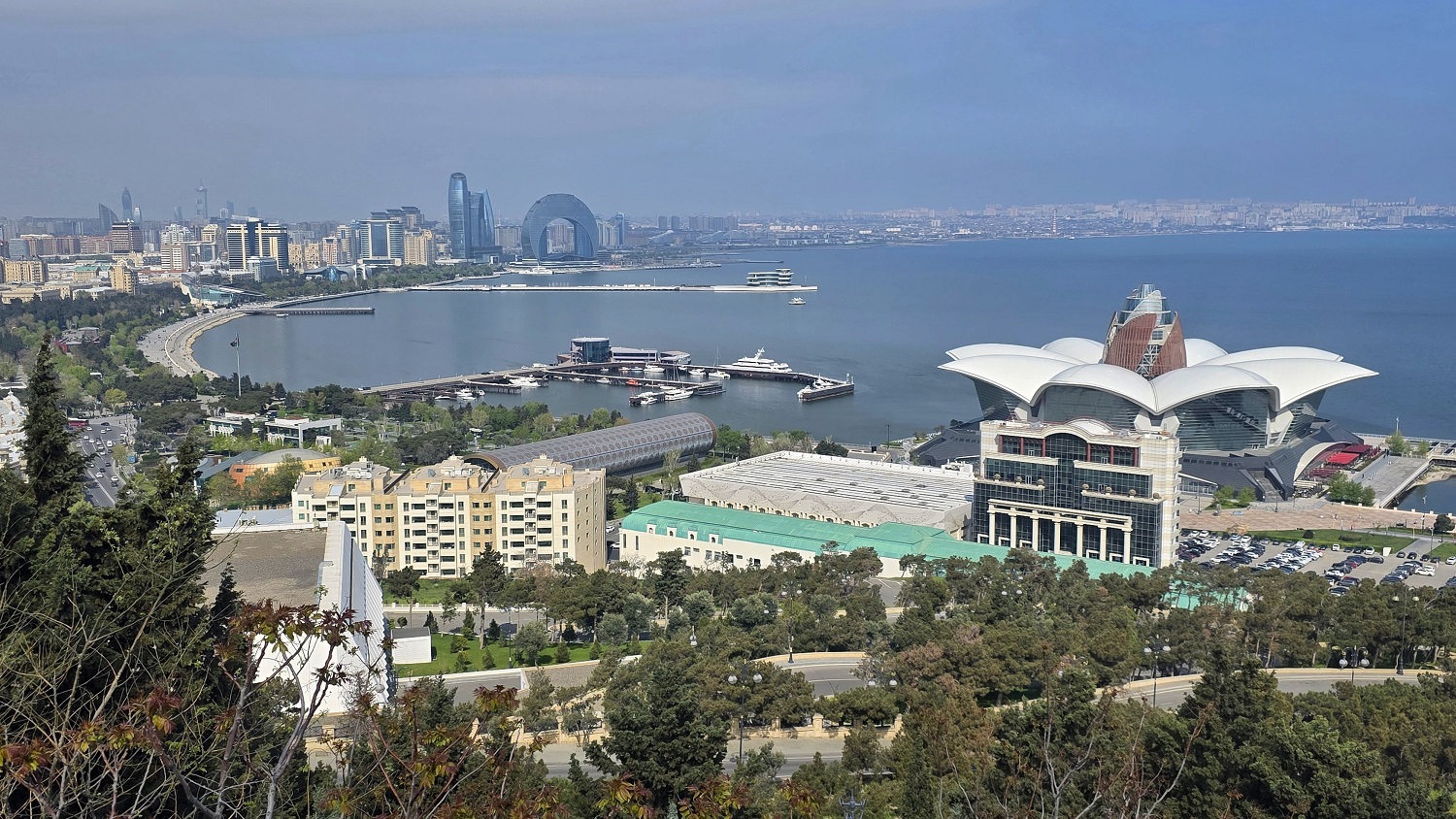Później złapałyśmy chwilę oddechu i wjechałyśmy Baku Funicular na górę, gdzie znajduje się Dagustu Park. To była idealna pauza – trochę ciszy, trochę zieleni i widok na całe miasto oraz Morze Kaspijskie. Jedno z tych miejsc, gdzie po prostu siadasz i patrzysz… bez potrzeby robienia czegokolwiek więcej.