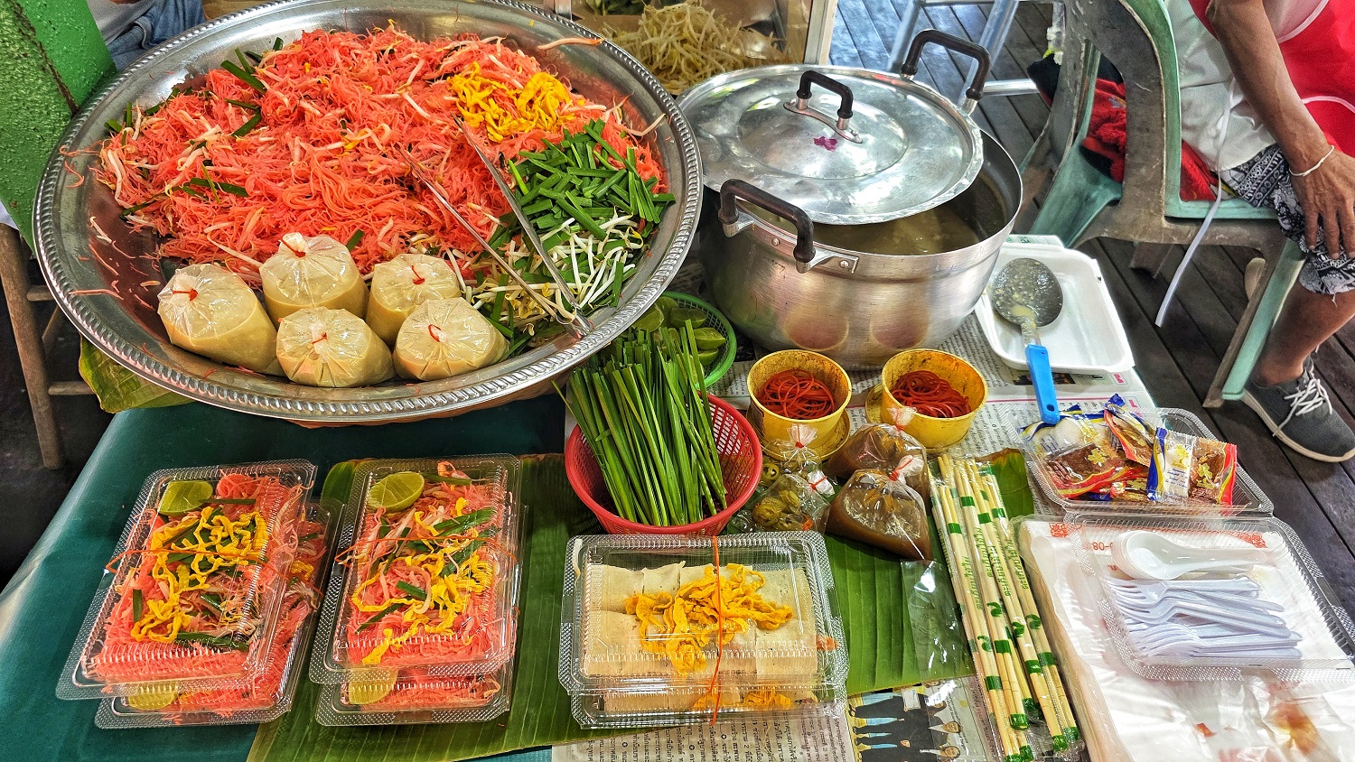 To, co najbardziej zapamiętaliśmy z Khlong Lat Mayom, to spokój i lokalność. Rodziny siedzące przy stolikach, dzieci biegające między stoiskami, starsze panie gotujące według tradycyjnych receptur. Na ten targ przyszliśmy z ciekawości. Wyszliśmy… ledwo się tocząc.