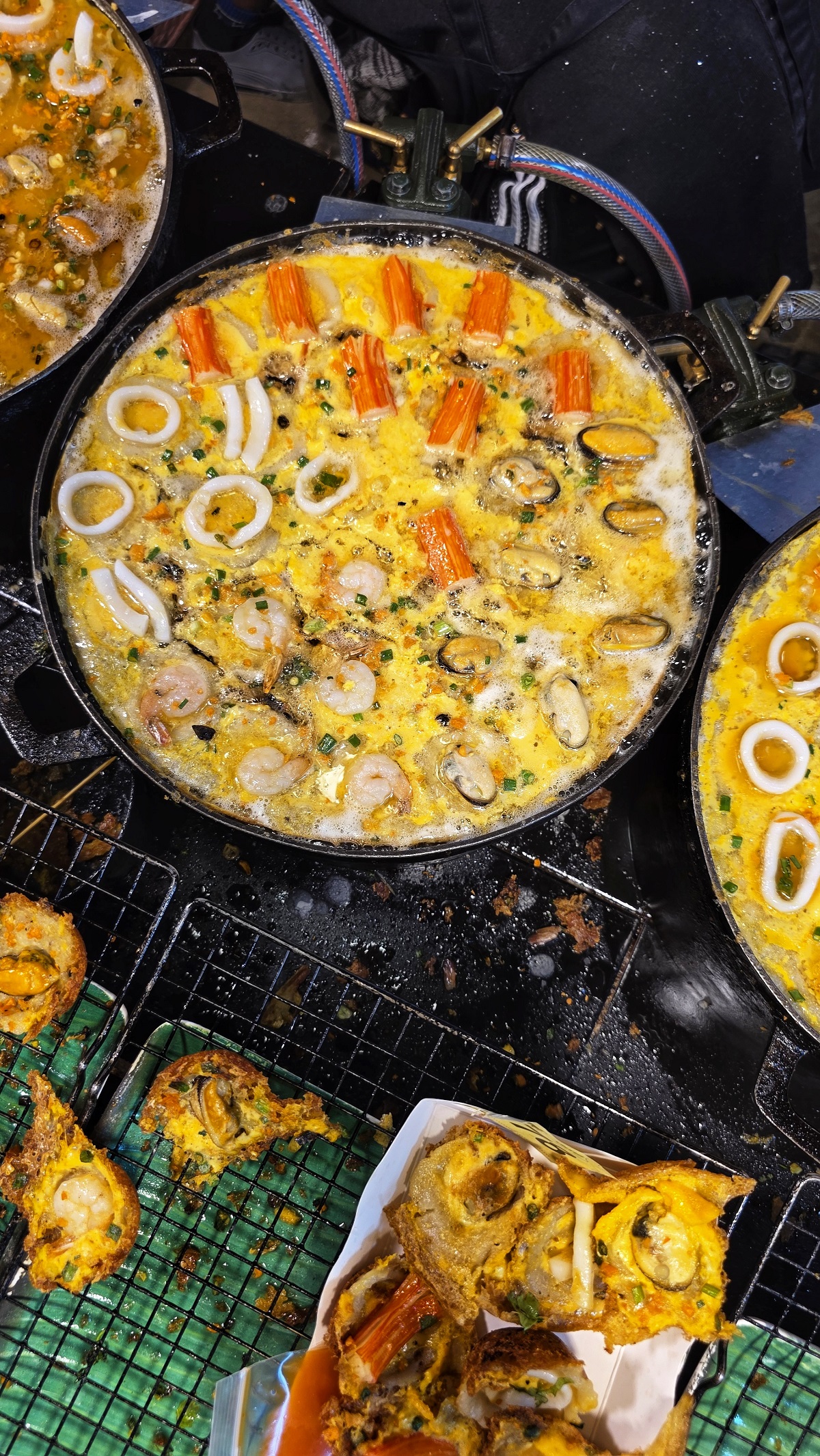 Nie mogliśmy też przejść obojętnie obok małych, puszystych „jajecznych babeczek” przygotowywanych w metalowych foremkach. Coś pomiędzy omletem a sufletami, z dodatkiem ziół i kawałków owoców morza. Niepozorne, a zaskakująco pyszne.